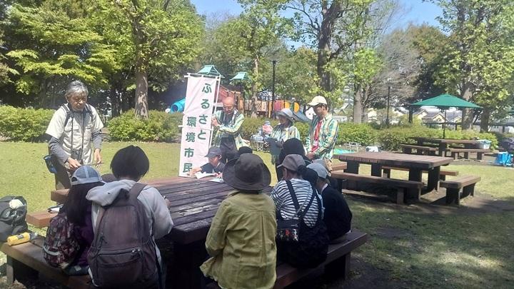 出発前、かやねずみ先生から公園の地図と透明のジッパー袋?が配られ、ちょうちょと鳥の観察ポイントを教わりいよいよ調査開始!