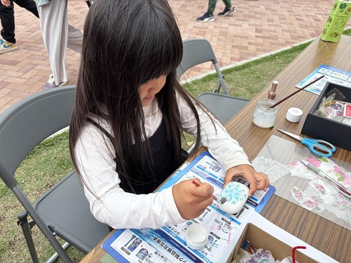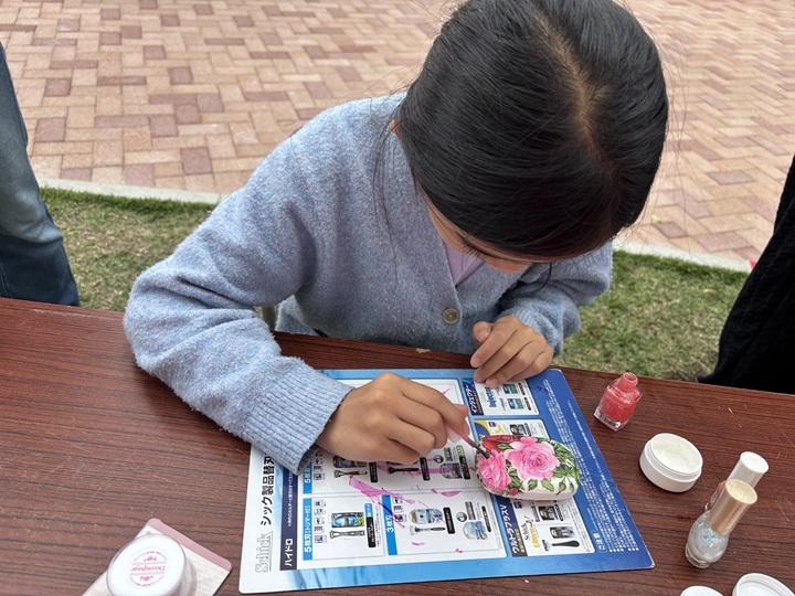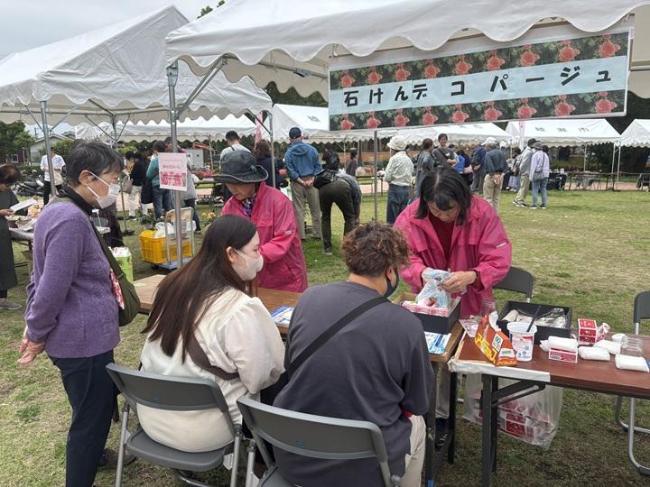 今年も石けんデコパージュのワークショップを開催しました。石けんに好みのペーパーナプキンを切って貼り付け世界でたった一つのオリジナル石けんを作ります。参加者に大変人気であっという間に用意した石けんが無くなりました。