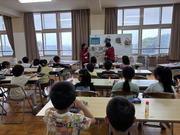 綾瀬市環境学習プログラムを使って2年生の授業で新聞紙でエコでおしゃれな新聞バックを作る体験教室を行いました。