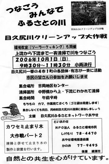 | 上流から下流まで「目久尻川クリーンアップ大作戦」に参加しよう! |