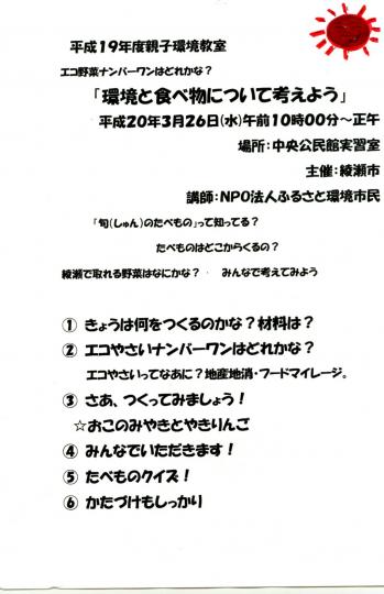 | エコ・クッキング「環境と食べ物について考えよう」 |