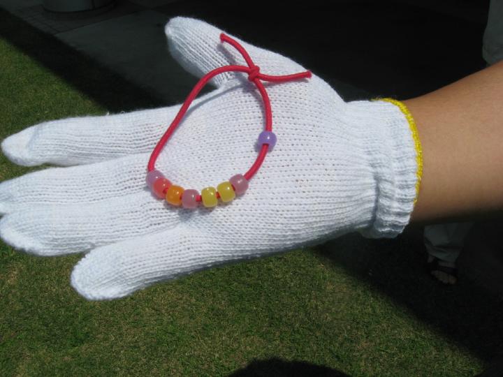 *エコビーズは太陽の光にあたると白から紫やオレンジ等の色々に変色します。これは太陽光の紫外線に反応しているからです。これからは紫外線の強い時期です。お肌の紫外線対策に利用されては!