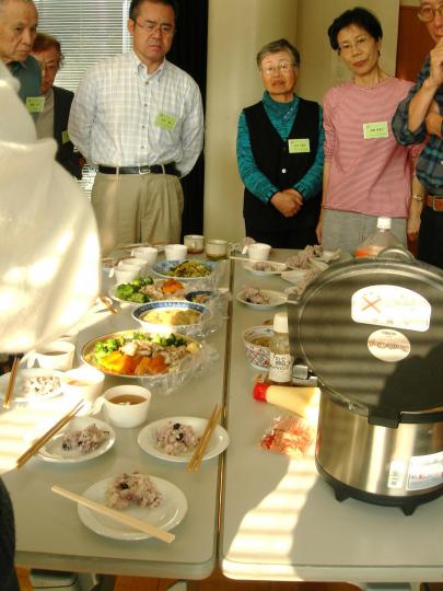 地球環境の現状、未来の予測などの映像を見たり、ワットアワーメーターを使って3種類の電球のエネルギィ-比較、待機電力計測をしたりしました。エコクッキングで出来た料理の試食もあり和やかな雰囲気での講座になりました。