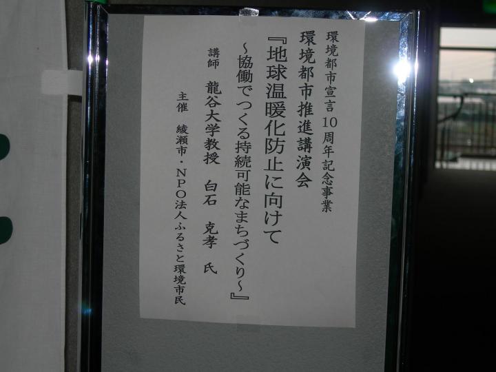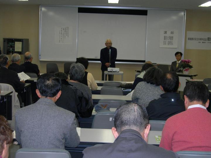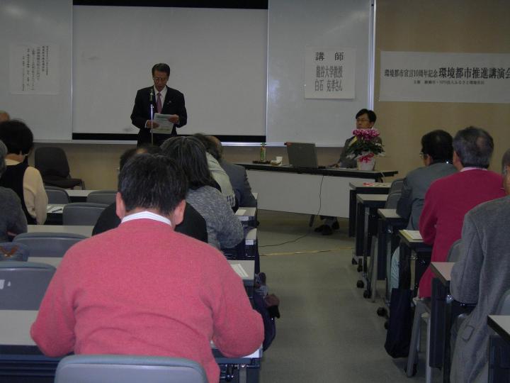 環境都市宣言10周年を記念して白石克孝教授がはるばる京都から来てくださり「地球温暖化にむけて」協働でつくる持続可能なまちづくりについてお話して下さいました。