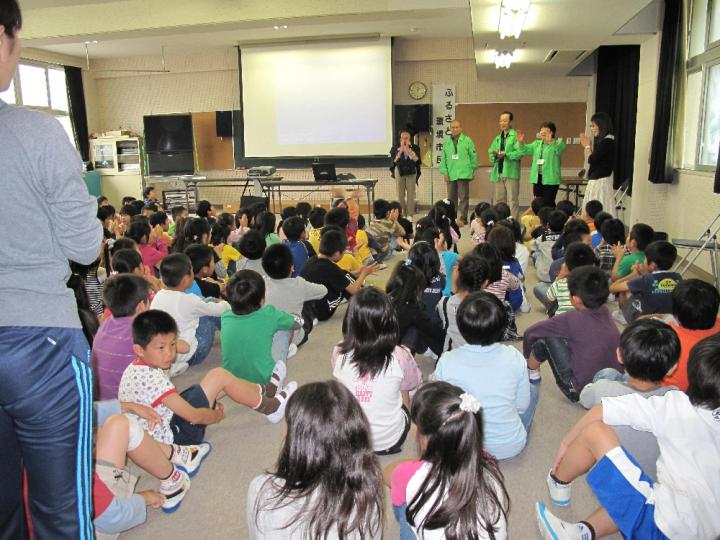 授業に入る前にホタルを見たことがある人に手を上げてもらいました。すると80%以上の子供たちの手が挙がりました。子供たちの関心の高さがうかがえました。