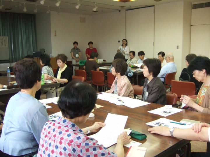 パワーポイントでふるさと環境市民の活動やカルタ作りの過程を説明した後、カルタ取りをしました。受講生の方々もはじめは遠慮気味でしたが時間がたつにつれ、童心に返ったようにかるたとりに夢中になっている様子が微笑ましくもありました。