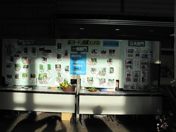 みどりのカーテン写真コンテストの結果発表を市役所1階ホールに展示しております。