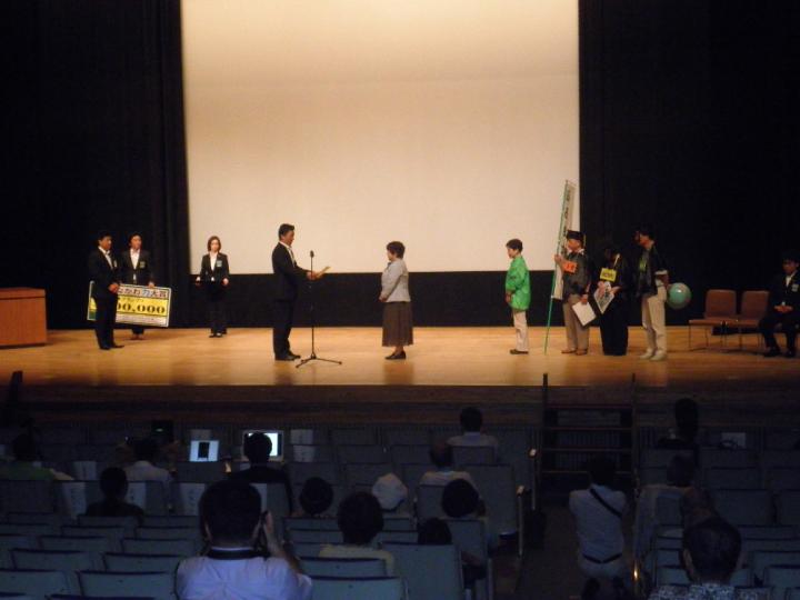 わかりやすく楽しい、そして、感性を育てる環境学習で「博士大集合」をテーマにプレゼンして衣装を着た3人の博士が花を添えてくれました。ふだんおせわになっているなかよしの「あやせJC」のメンバーも大いに盛り上げてくれました。小さなグループのわたしたちですが勇気と希望をもらってこれから、また、がんばっていくことができます。そして副賞に10万円も頂いてうれしいです。有効に使っていきましょう。