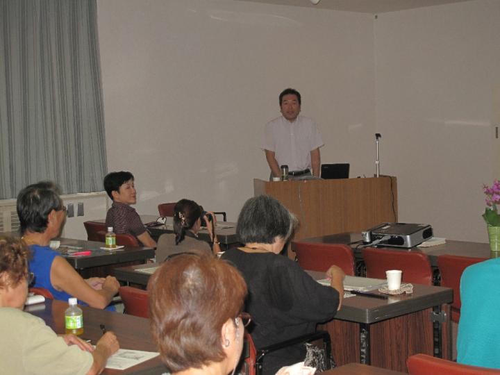 ハム市、ハノーバー市、ハイデルベルグ市などの取り組み事例についてパワーポイントを使いながら説明して頂きましたが、市民を巻き込みながらの施策や市民意識に付いて学ぶべき点も多く、受講生も真剣に聞き入っていました。講演後は講師を囲んでのティータイムとなり、エネルギー問題、市民の意識向上についての意見など様々な話し合いが行われました。