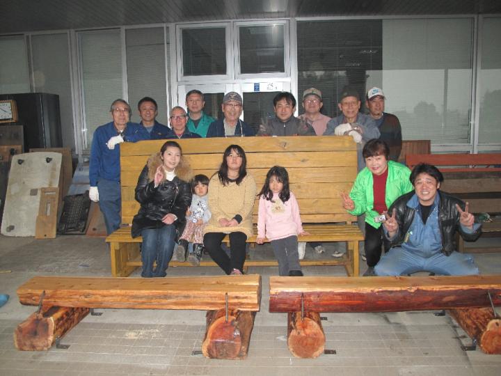 完成ベンチを前に記念の写真を撮りました。出来上がりは下記の通りです。