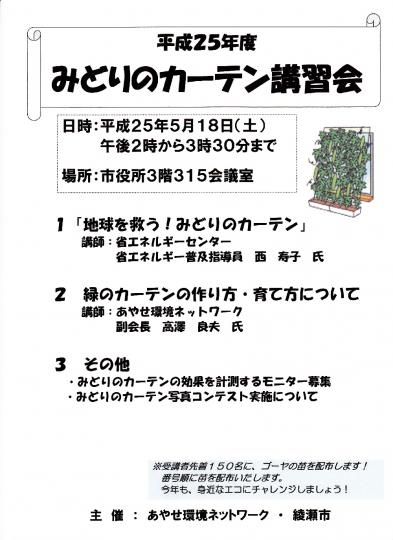 | H25年「みどりのカーテン講習会に80人が参加」 |