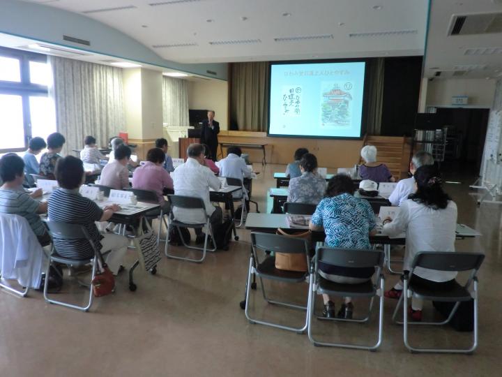 7月24日は、講師に高橋元さんを迎えて「ふるさとの宝かるた」をベースに郷土史を学びました。
