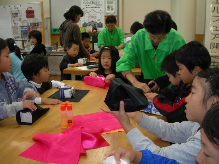 「3R(リユース、リデュース、リサイクル)をもっとすすめてごみを減らしていきましょう」の趣旨のもと、工作やドイツ・スゥエーデンのとりくみを映像で見たり、30回も使うペットボトルを見たりして3Rの大切さや温暖化について楽しく勉強しました。