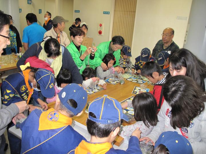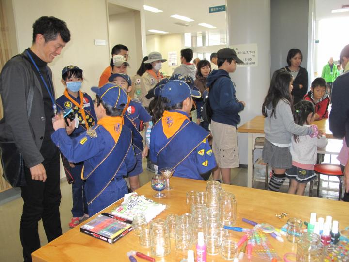 また、東洋ガラス株式会社さんによる「エコガラス」の手作り、ソーラーランタンの作成も行って、喜ばれました。パネルの準備等大変でしたが、説明がわかりやすいという声も頂きました。そのほか環境展では大学生によるソーラーカーの展示(実際に走ると90キロでるそうです)・あやせホタル保存会のゲンジボタルの生態の説明・ごみの削減の話などいろいろなテーマと視点で環境を考えるよい機会となりました。(文:安藤さん)
