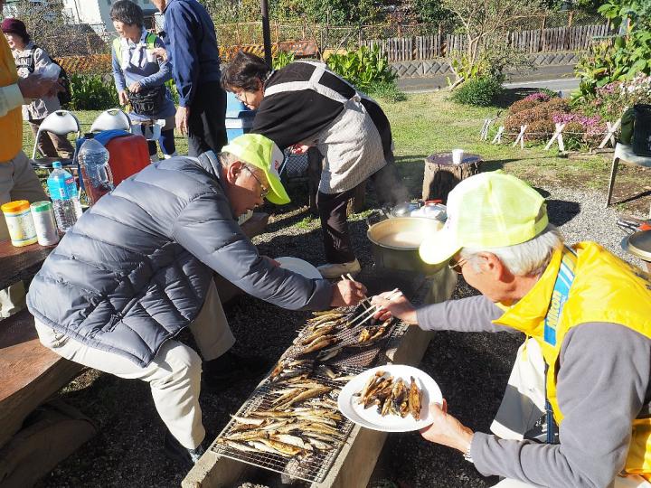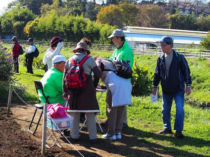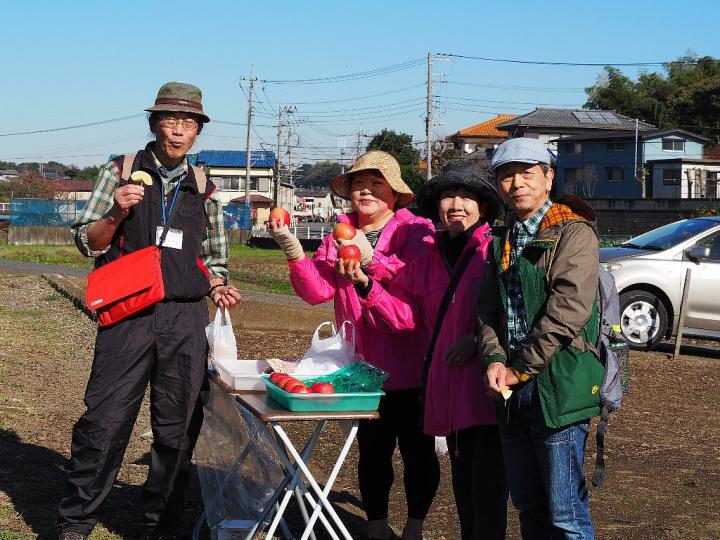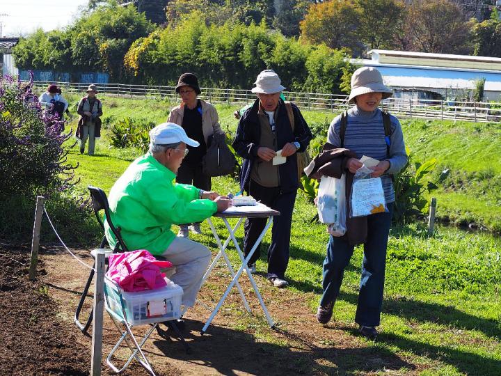 私たち「綾瀬チーム」は第三ポイントの中野橋にてウオーキング参加者への「歓歩証」へのスタンプサービスとともに長野のおいしいりんごや焼きたてパンの提供をさせていただきました。日本晴れの好天に誘われて参加者の皆さんは笑顔で軽快に海老名や座間のゴールを目指して出発してゆきました。全員の参加者が三時半ころには走り終えて楽しい一日でした。お疲れ様でした。 (文:大澤記)