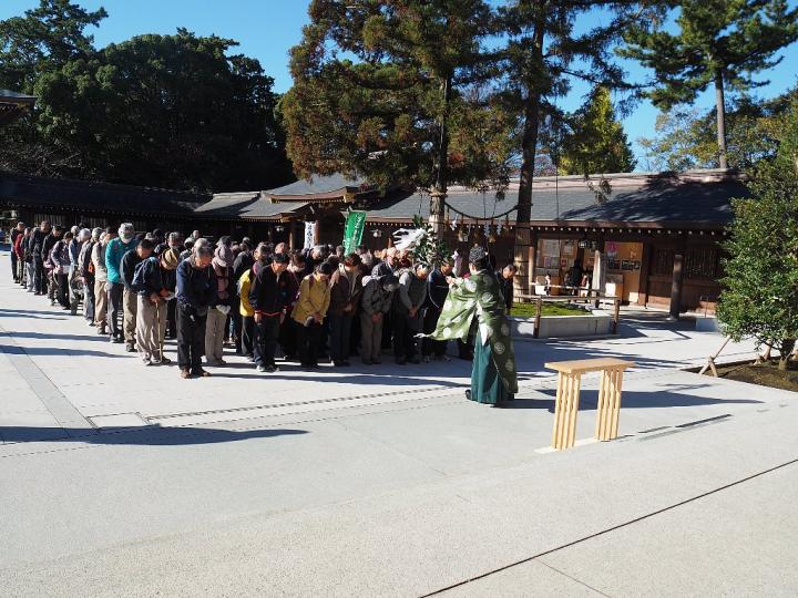 今回は第九回目のウオーキングで 寒川神社にてお祓いを受けた後、9時に出発して海老名のゴール(北部公園)と座間のゴールを目指しました。参加者は総勢187名の老若男女が参加されました。当日は日本晴れでまさにウオーキング日和でした。