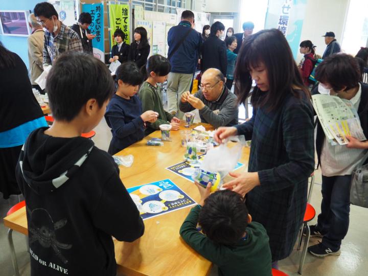 あるのでどれくらい来てくれるかな?と楽しみでした。子供たちが来てくれたらプレゼントするためのエコビーズを用意。10時開会とともに朝から多くの人たちが訪れ、待っていた小学生も50人くらいがパパやママといっしょに来てくれました。