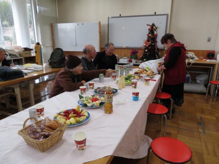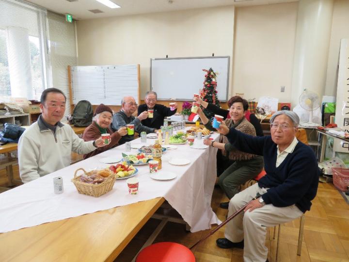 持ち寄りの料理とケーキでクリスマス会を楽しみました。毎年恒例の目久尻川クリーンアップやふれあいウオーク、小中学校への出前講座、夏休みの自由研究講師等にくわえて今年はきらめき補助金