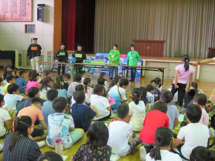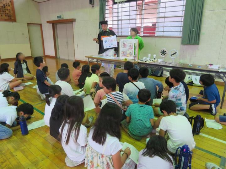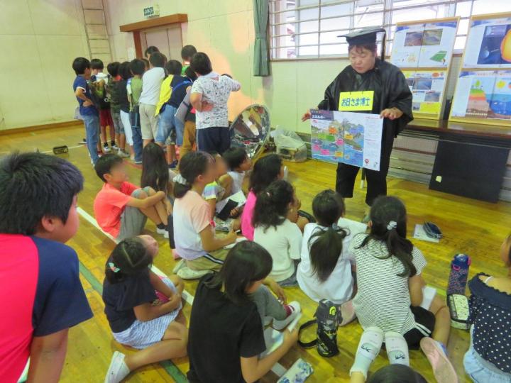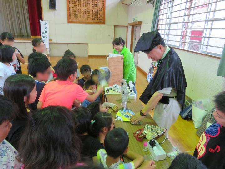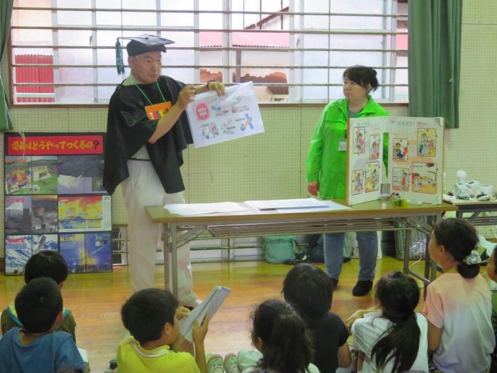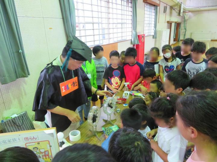 地球博士は、マイクロプラスチックの実情や危険性をお話しし、エネルギー博士には節電家族の模型で参加型のお話を聞いてもらいました。
