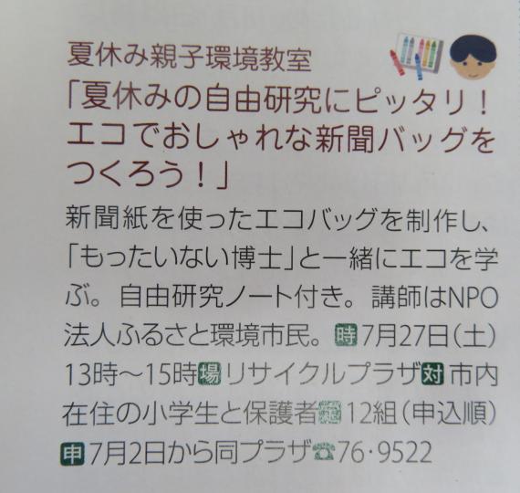 | 「エコでおしゃれな新聞バッグをつくろう!」 |