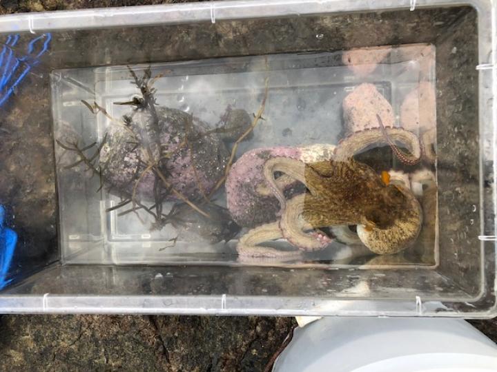 他にも、ウニ、イソカニダマシ(ヤドカリの仲間で足が8本、カニは10本) 貝、アオウミウシ、なんと、立派な真ダコまでいました!