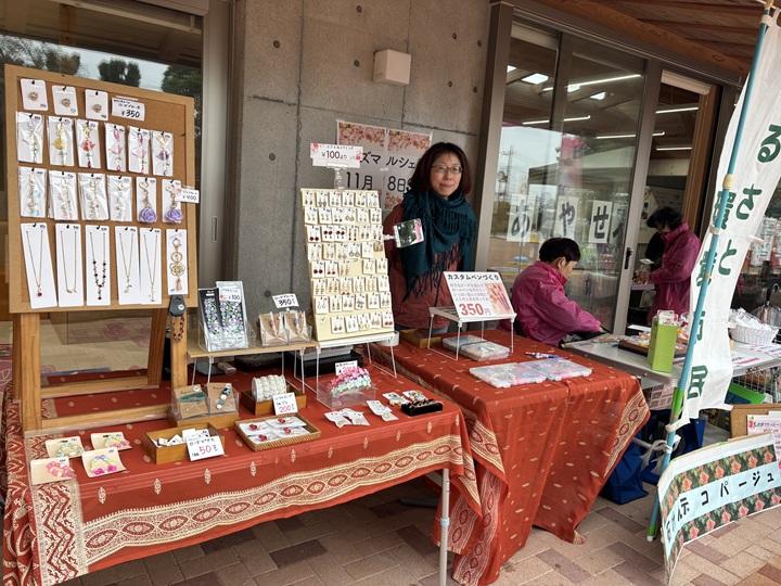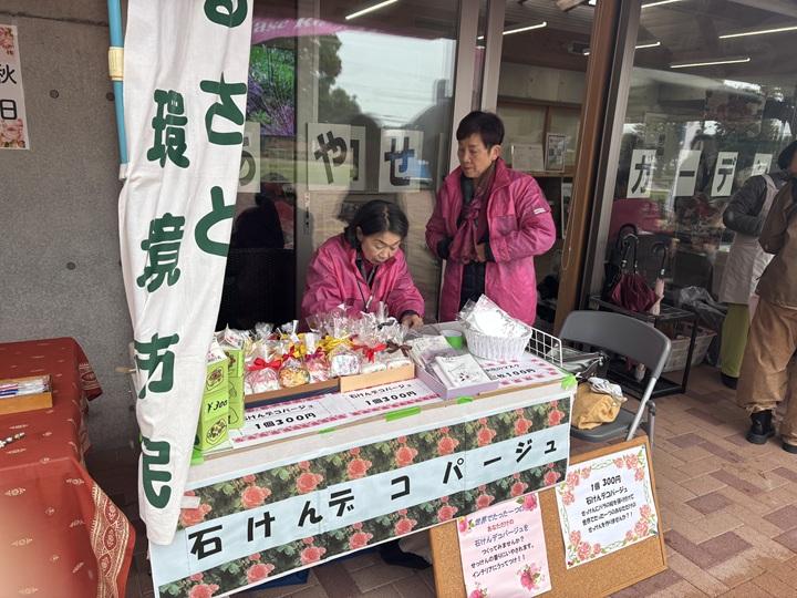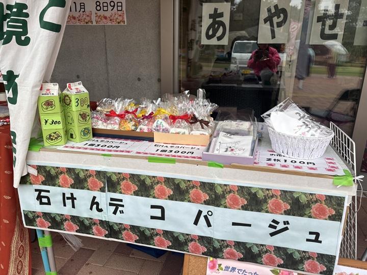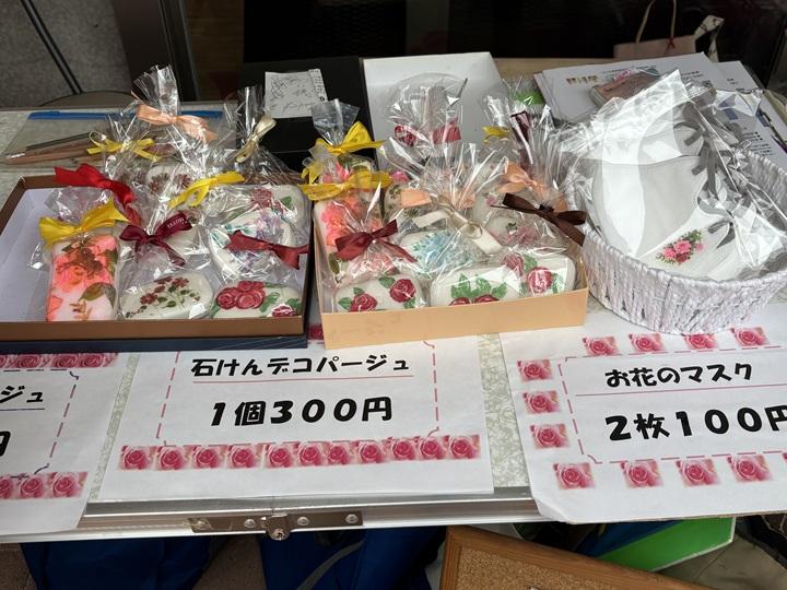 私たちはせっけんデコパージュやデコマスク、ハンカチを販売しました。